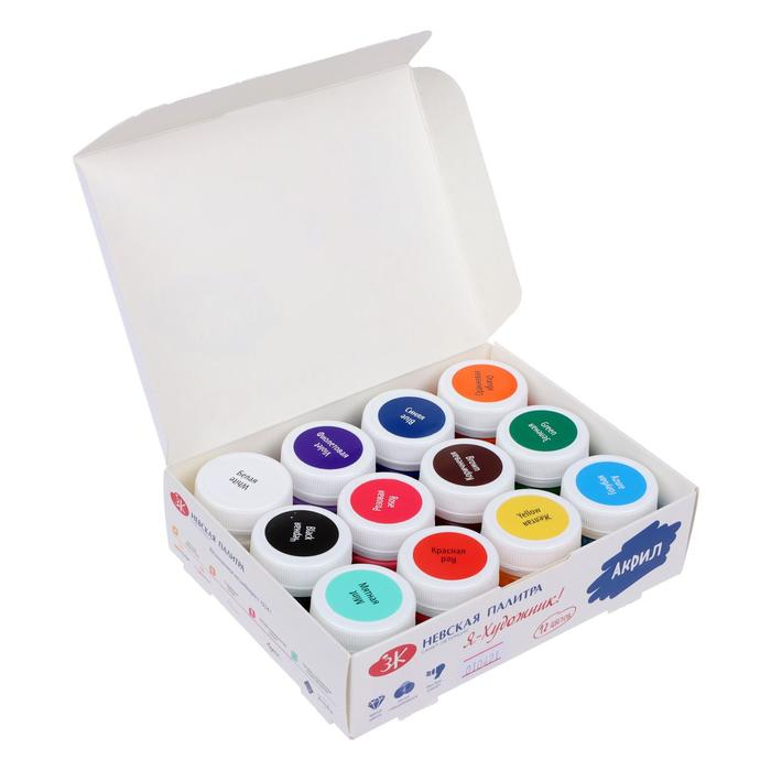 Краска акриловая, набор 12 цветов х 20 мл, Calligrata, художественная, морозостойкая, в картонной коробке