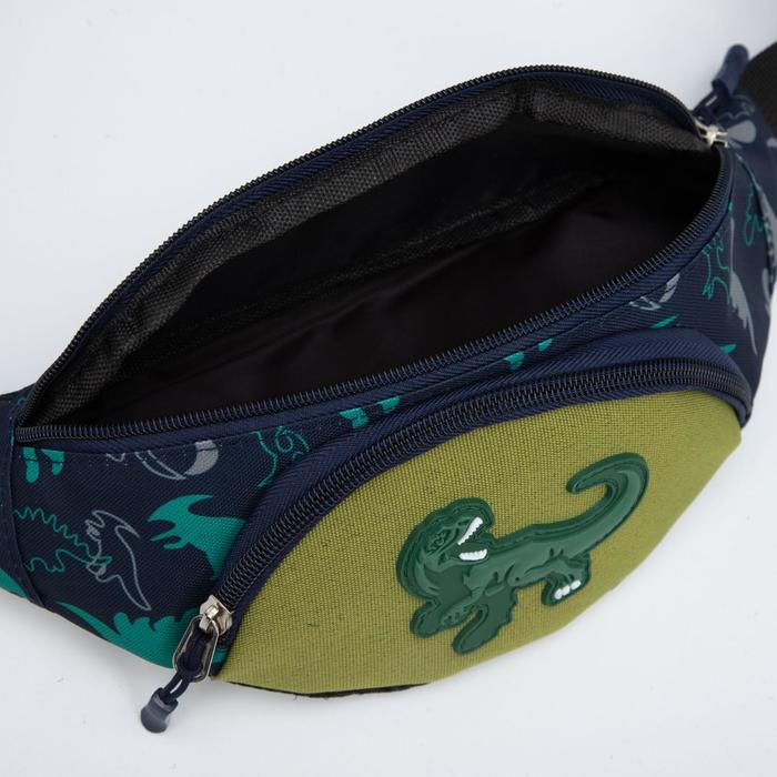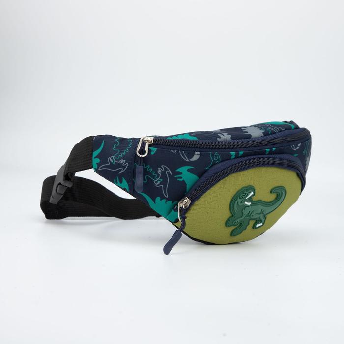 Сумка поясная, отдел на молнии, цвет зелёный, «Динозавр»