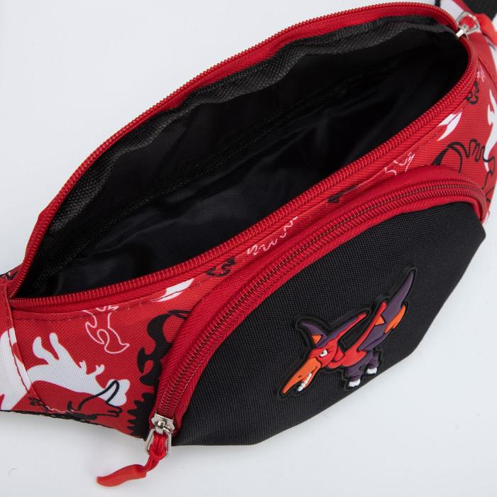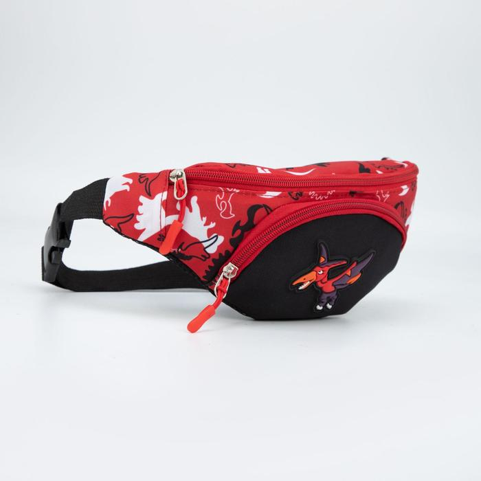 Сумка поясная, отдел на молнии, цвет красный, «Динозавр»