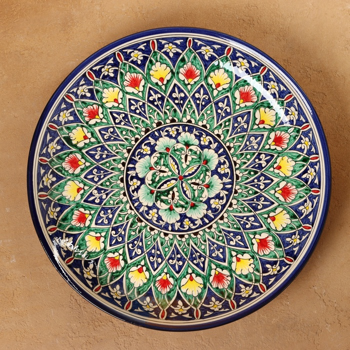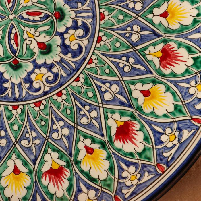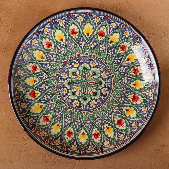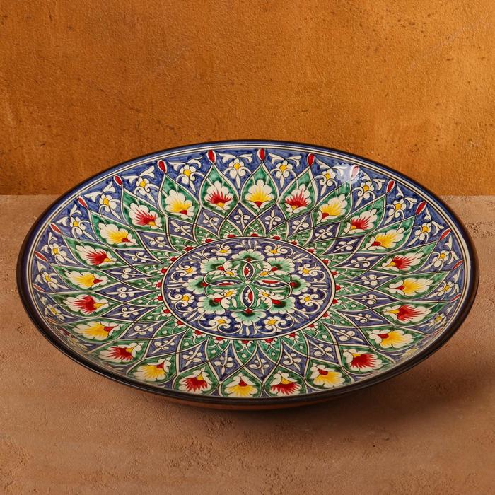 Ляган Риштанская Керамика "Цветы", 36см, синий