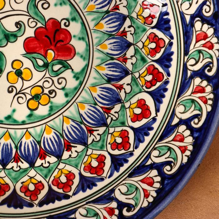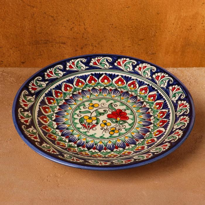 Тарелка Риштанская Керамика "Цветы", 26 см, синяя микс