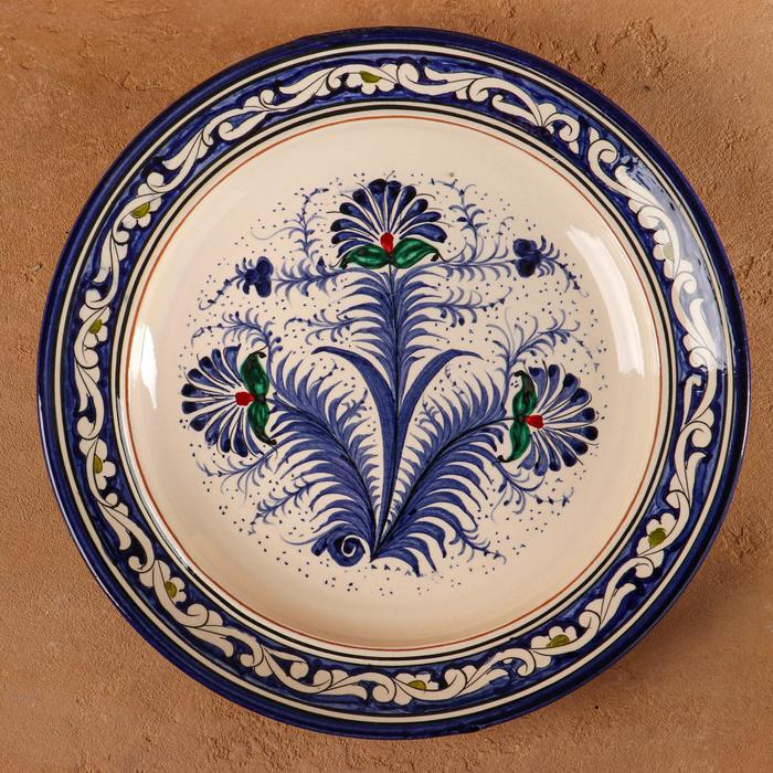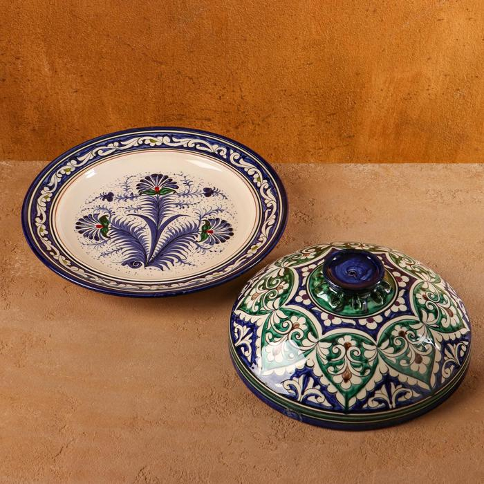 Блинница Риштанская Керамика "Узоры", 24 см, синий микс