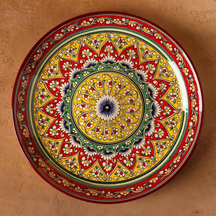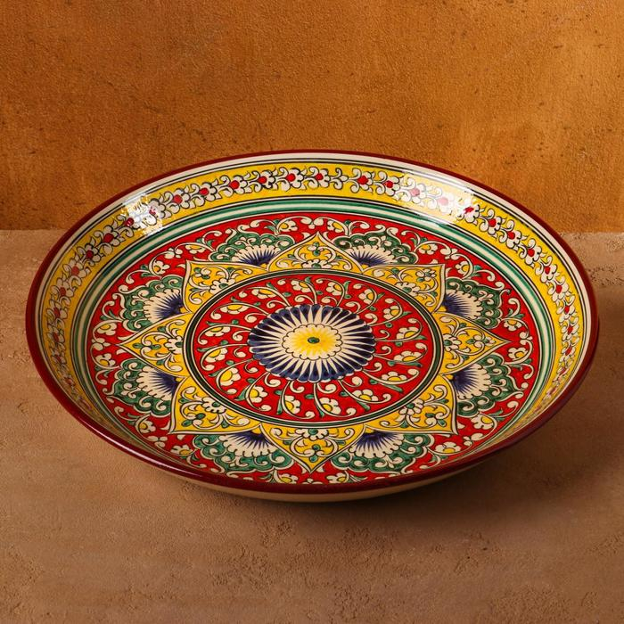 Ляган круглый Риштанская Керамика, красный, 37см, МИКС