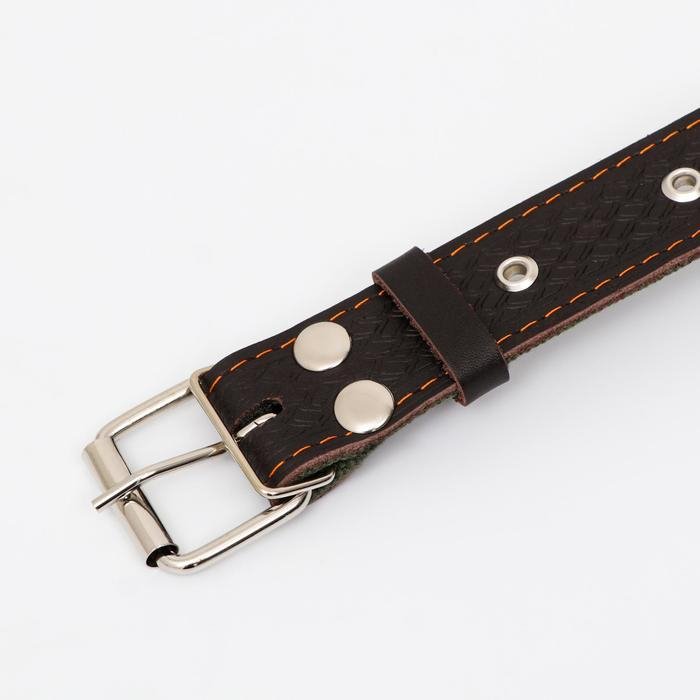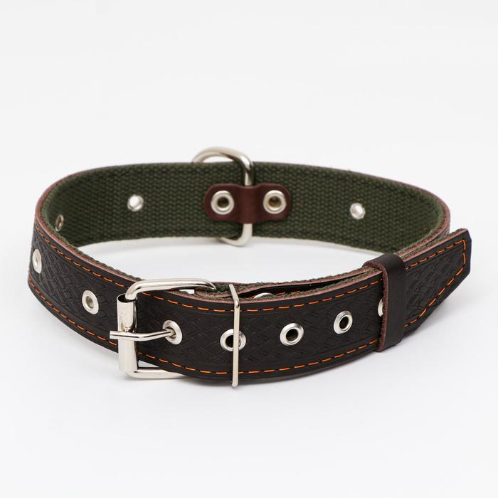 Ошейник комбинированный безразмерный, кожа/брезент, 65 х 3,5 см, ОШ 31-61 см, коричневый