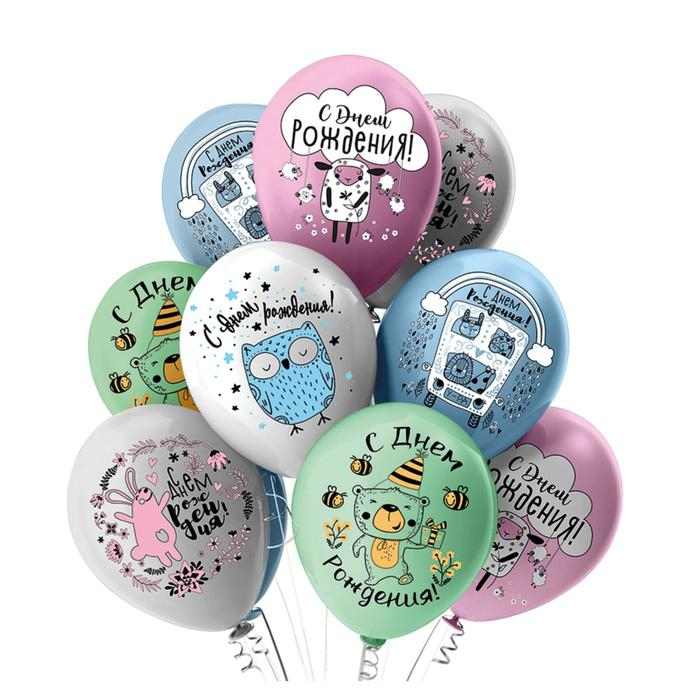 Шар латексный 12" «С ДР! Лесная сказка!», пастель, 1-сторонний, набор 25 шт., МИКС