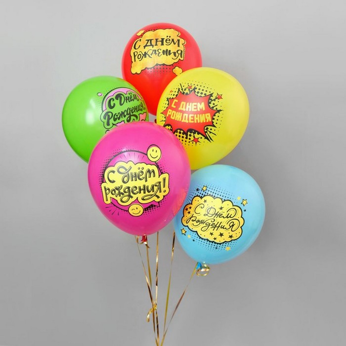 Шар латексный 12" «С ДР! Комиксы!», пастель, 1-сторонний, набор 25 шт., МИКС