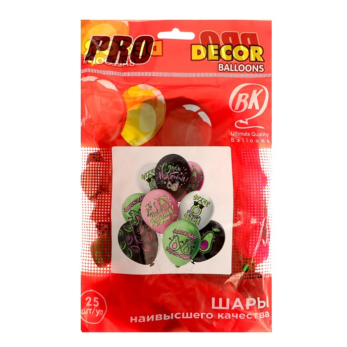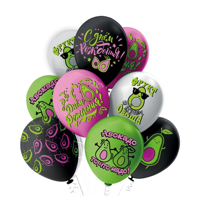 Шар латексный 12" «С ДР Авокадо!», пастель, 1-сторонний, 5-сторонний, набор 25 шт., МИКС