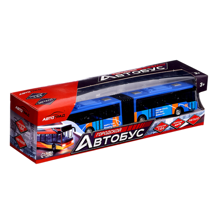Автобус металлический «Городской транспорт», инерционный, масштаб 1:64, цвет синий