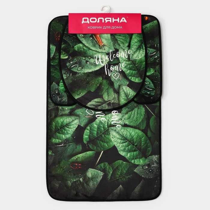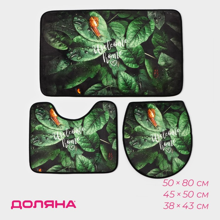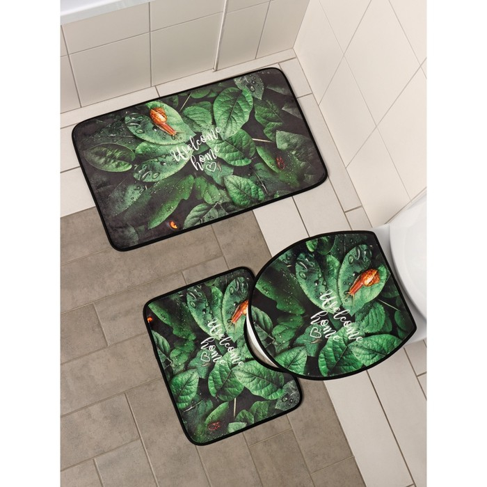 Набор ковриков для ванны и туалета Доляна «Тропики», 3 шт, 50×80, 45×50, 38×43 см
