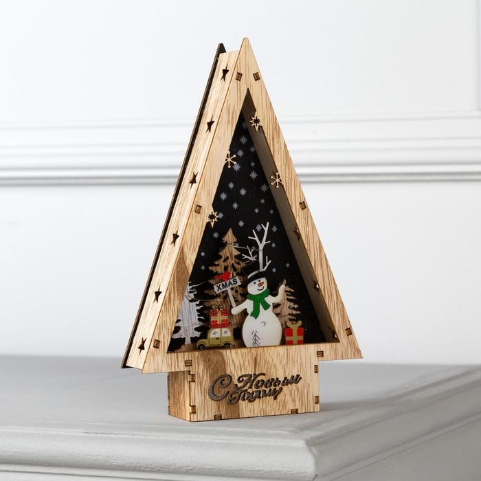 Светодиодная фигура «Домик со Снеговиком» 16 × 11 × 4.5 см, дерево, батарейки АААх2 (не в комплекте), свечение тёплое белое