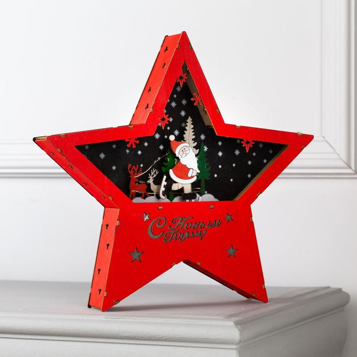 Светодиодная фигура «Дом с Дедом Морозом» 12 × 17 × 4 см, дерево, батарейки АААх2 (не в комплекте), свечение тёплое белое