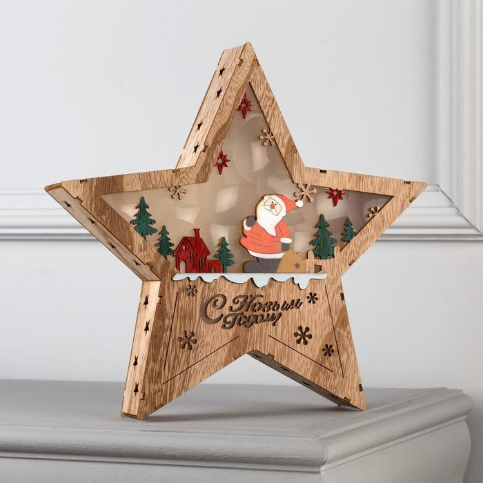 Светодиодная фигура «Дом с Дедом Морозом» 12 × 17 × 4 см, дерево, батарейки АААх2 (не в комплекте), свечение тёплое белое