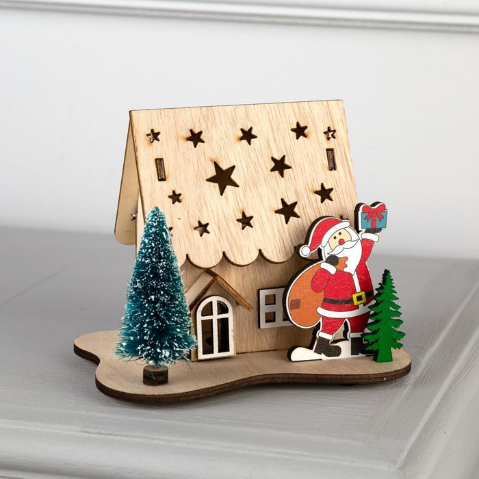 Светодиодная фигура «Дом с Дедом Морозом» 11 × 15 × 3 см, дерево, батарейки LR41х3 (в комплекте), свечение тёплое белое