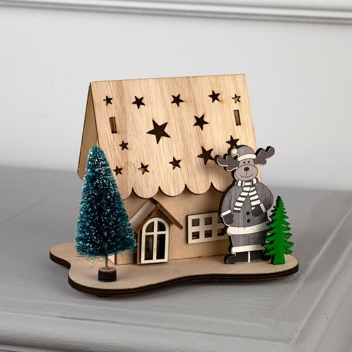 Светодиодная фигура «Дом с оленем» 11 × 15 × 3 см, дерево, батарейки LR41х3 (в комплекте), свечение тёплое белое