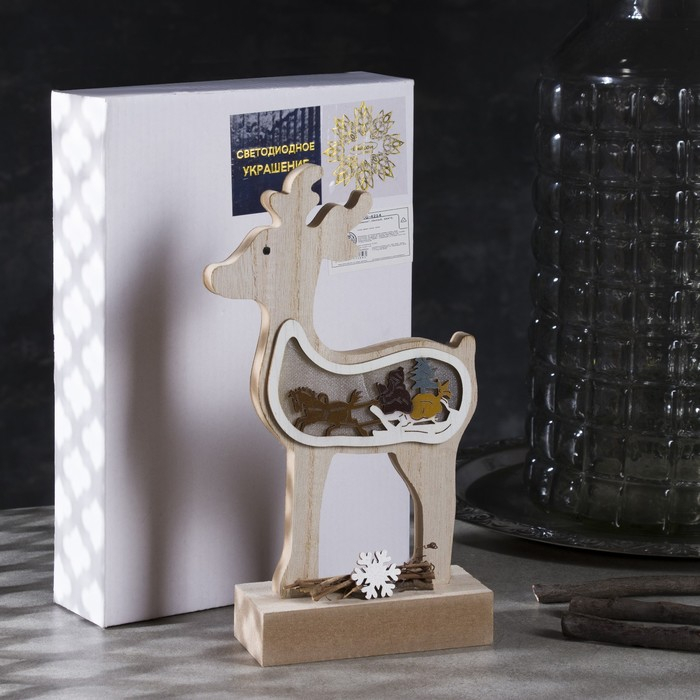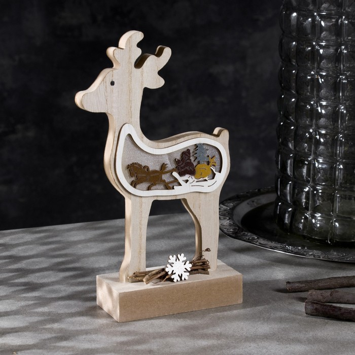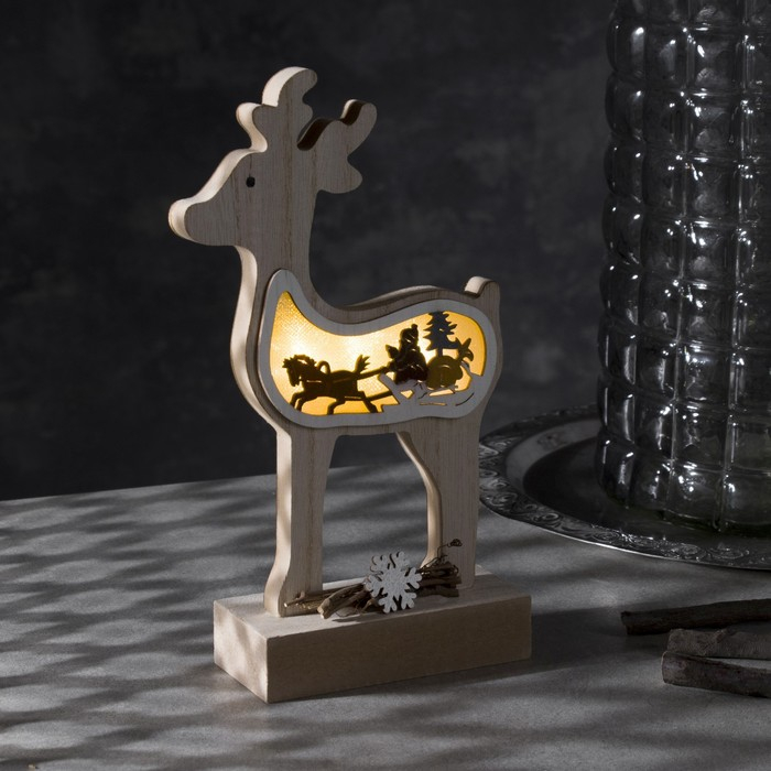 Светодиодная фигура «Олень» 12 × 23 × 5 см, дерево, батарейки АААх2 (не в комплекте), свечение тёплое белое