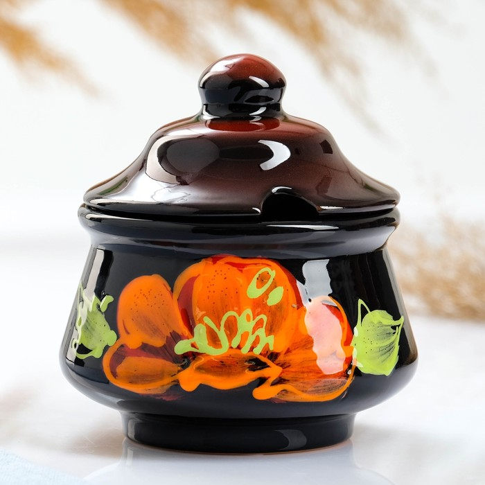 Сахарница "Псковская" 0,3л / 12х12,5см, мак на черном