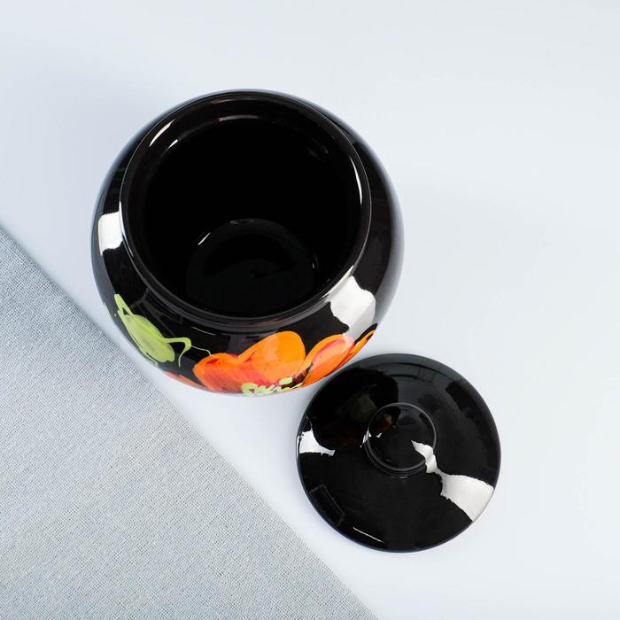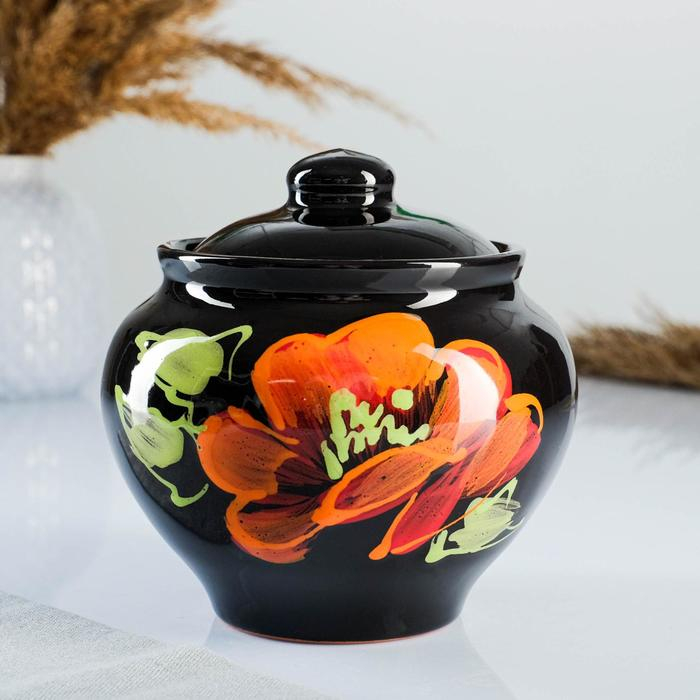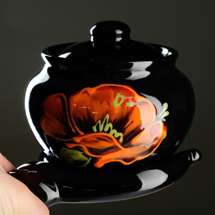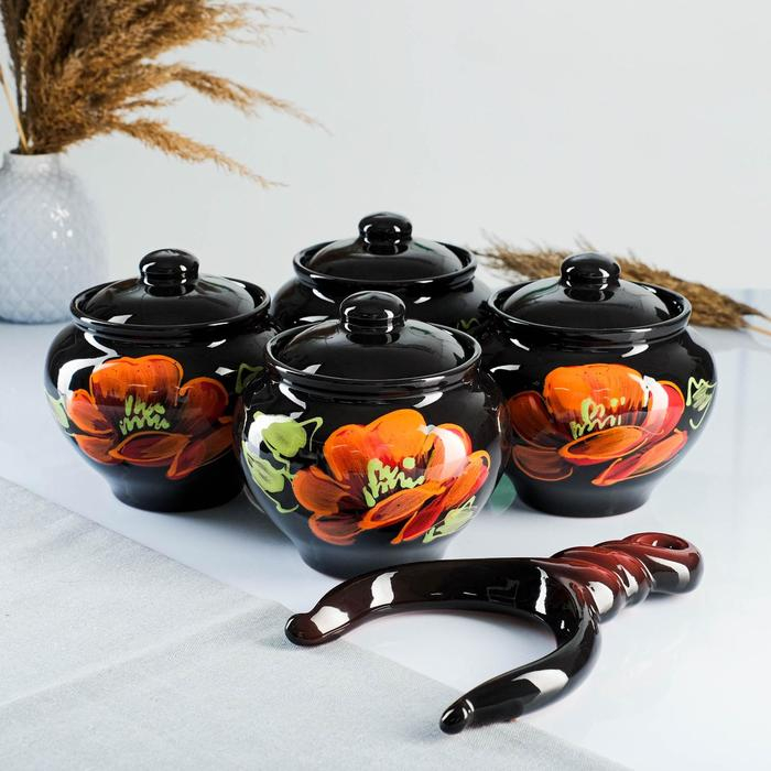 Набор горшков "Подарочный с ухватом" 4х0,85л / 27х21х13см, мак на черном