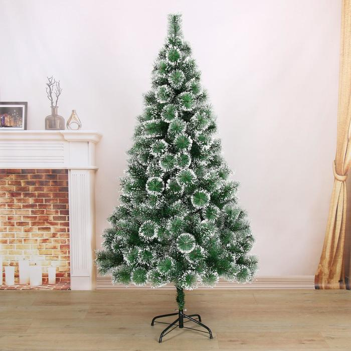 Кедр зеленый снег 180 см, d нижнего яруса 100 см, d иголок 10 см, 235 веток, металл подставка