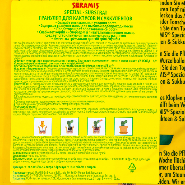 Гранулят для Кактусов и суккулентов Seramis, 7 л