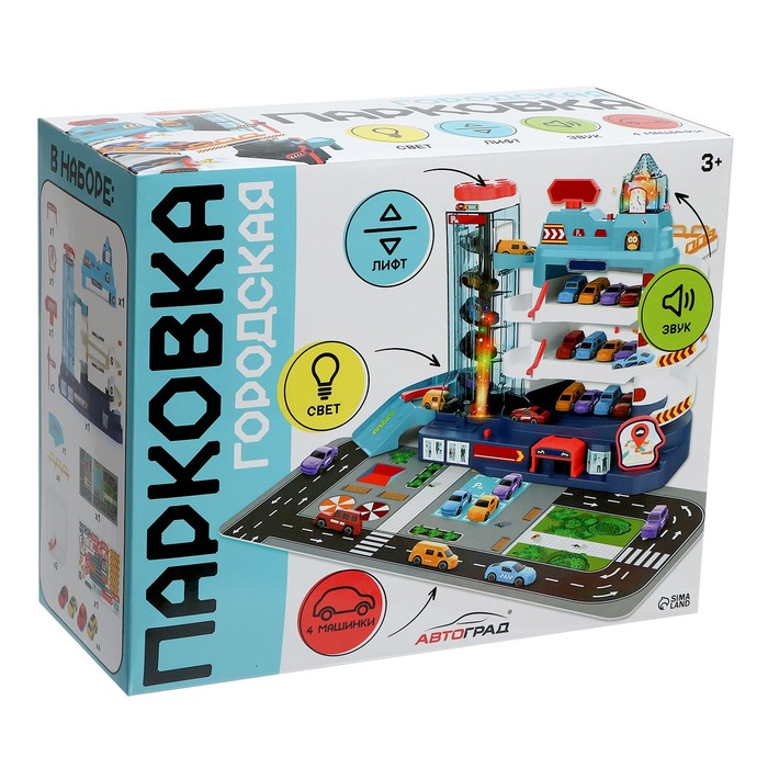 Парковка «Городская», с лифтом, 3 уровня, 4 машинки, световые и звуковые эффекты