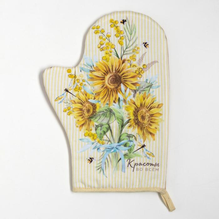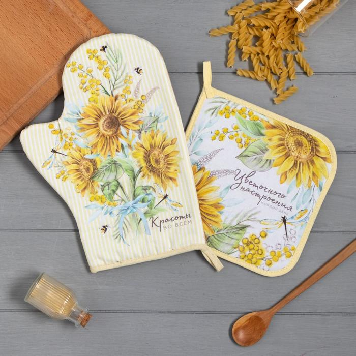 Набор кухонный «Красоты во всем» варежка-прихватка 20х28см, прихватка 19х19см,100% хлопок