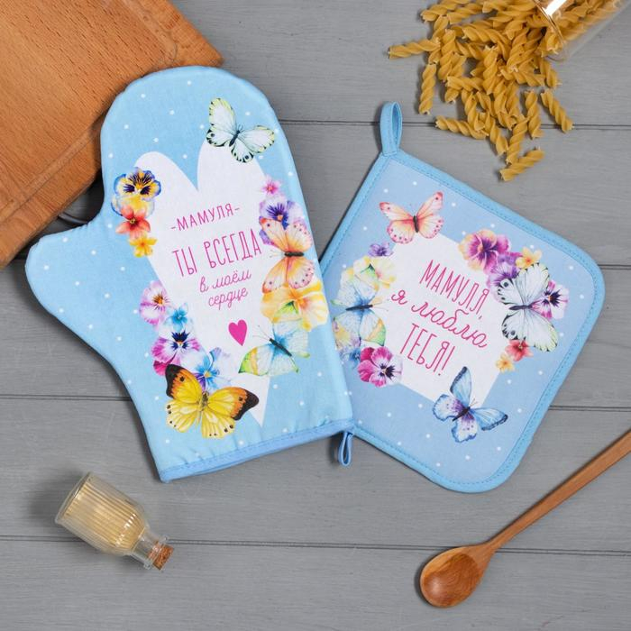 Набор кухонный «Мамуля» варежка-прихватка 20х28см, прихватка 19х19см,100% хл