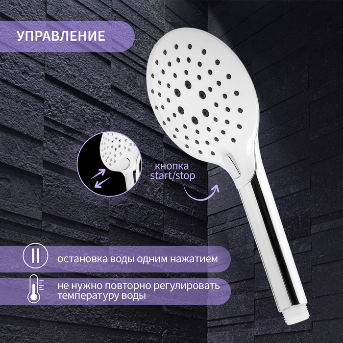 Душевая лейка ZEIN Z419, кнопочная, пластик, 3 режима, цвет хром