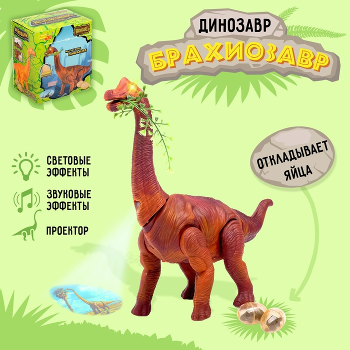 Динозавр «Брахиозавр травоядный», работает от батареек, откладывает яйца, с проектором, цвет коричневый