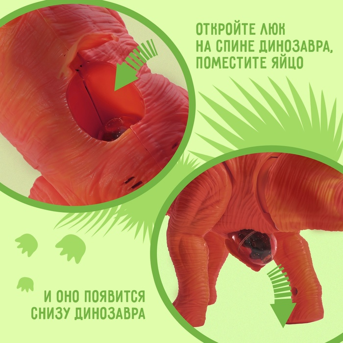 И это ещё не всё, на что способна эта рептилия. Откройте крышку на спине ящера и положите туда яйцо, через мгновение оно выкатится снизу животного. Так динозавр показывает, как он откладывает яйца.