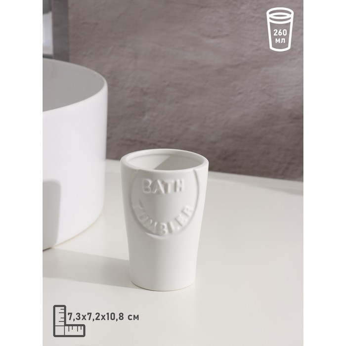 Набор аксессуаров для ванной комнаты Доляна «Изящный барельеф», 4 предмета (дозатор 250 мл, мыльница, 2 стакана), цвет белый