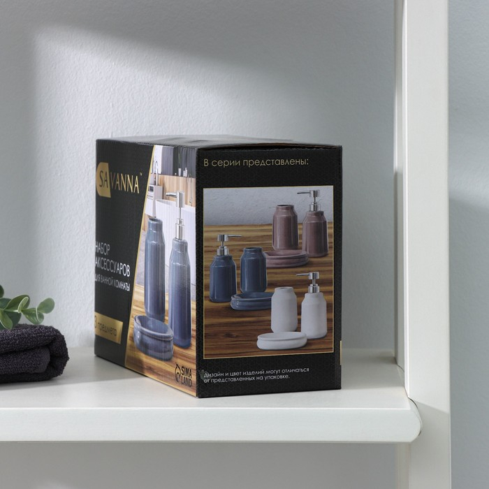 Набор аксессуаров для ванной комнаты SAVANNA «Бэкки», 3 предмета (мыльница, дозатор для мыла 400 мл, стакан), цвет серо-голубой