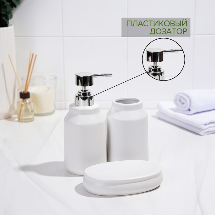 Набор аксессуаров для ванной комнаты SAVANNA «Глянец», 3 предмета (мыльница, дозатор для мыла, стакан), цвет белый