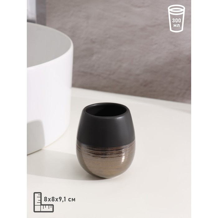 Набор для ванной комнаты Доляна «Клеопатра», 3 предмета (мыльница, дозатор для мыла, стакан), цвет чёрно-золотой