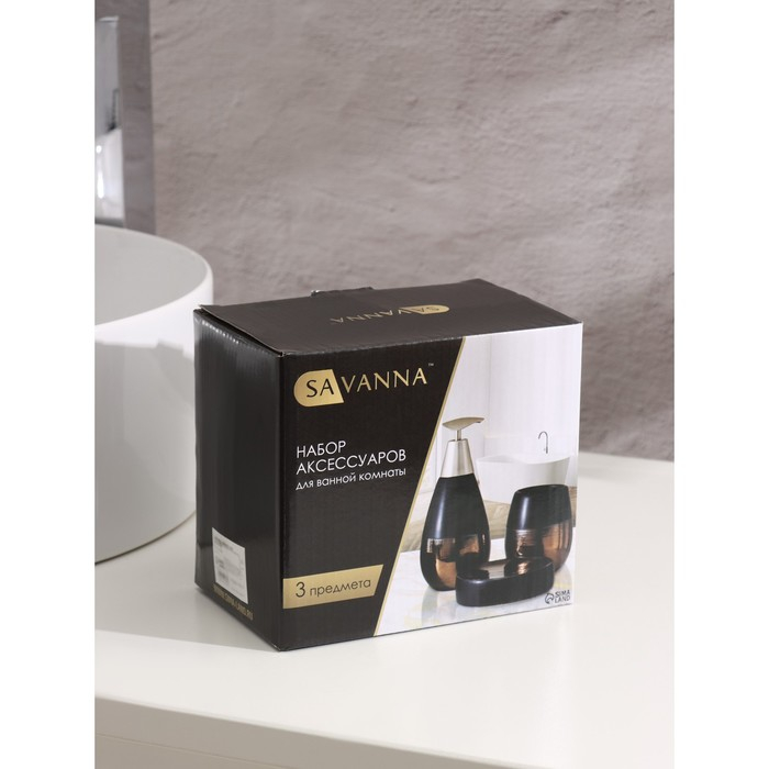 Набор аксессуаров для ванной комнаты SAVANNA «Бэкки», 3 предмета (мыльница, дозатор для мыла 400 мл, стакан), цвет серо-голубой