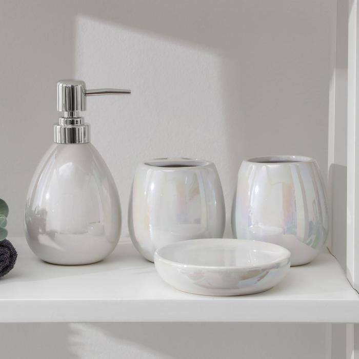 Набор аксессуаров для ванной комнаты Доляна «Изящество», 4 предмета (дозатор 250 мл, мыльница, 2 стакана), цвет белый