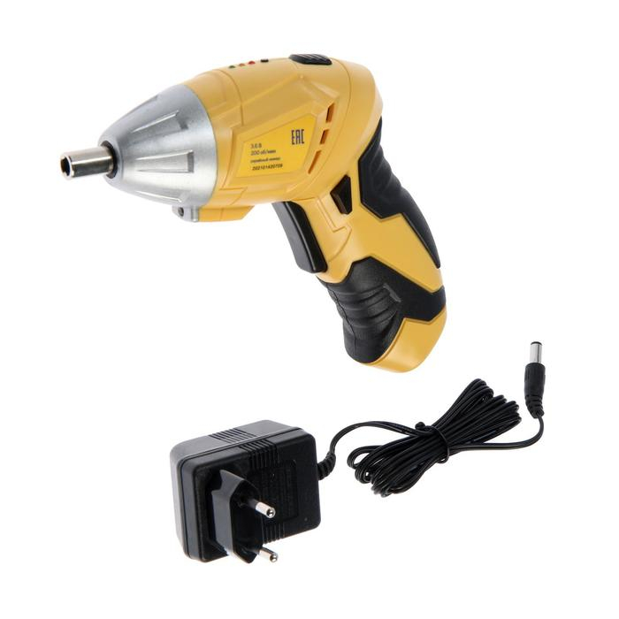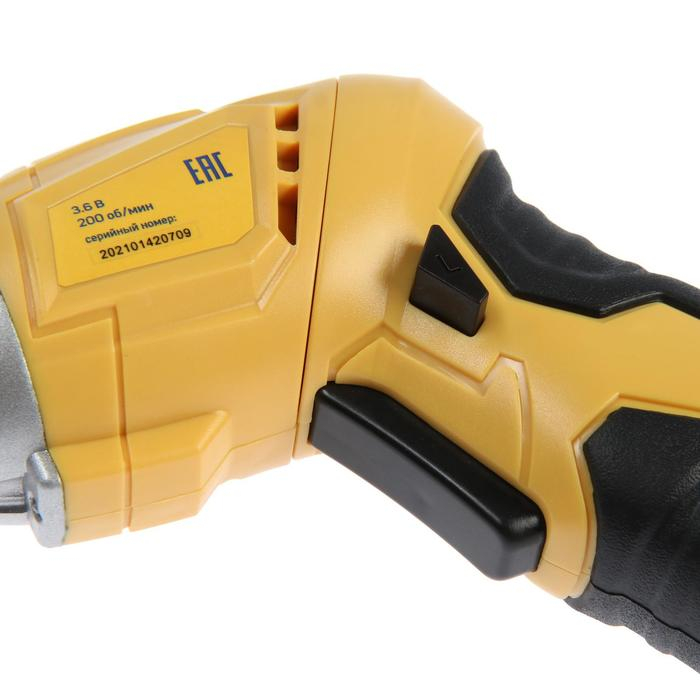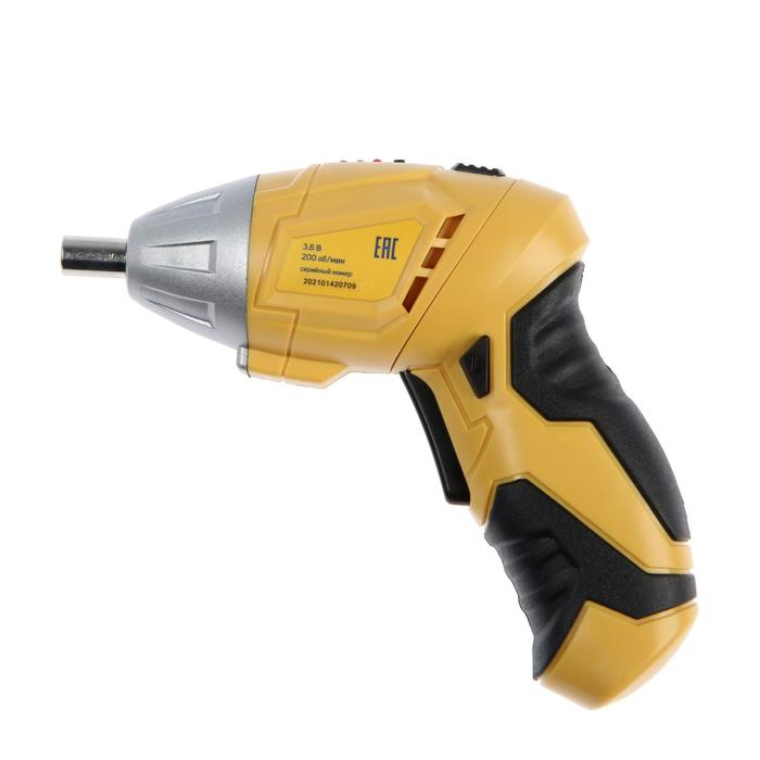 Отвертка аккумуляторная ТУНДРА ВДОМ, 3.6 В, Li-ion, 1.3 Ач, 200 об/мин, 3.5 Нм, HEX 1/4"
