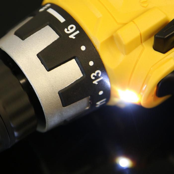 Дрель-шуруповёрт имеет быстрозажимной патрон, что позволит легко и быстро сменить насадки, не отвлекаясь от работы. Подсветка рабочей зоны помогает выполнять точные действия при недостаточном освещении.