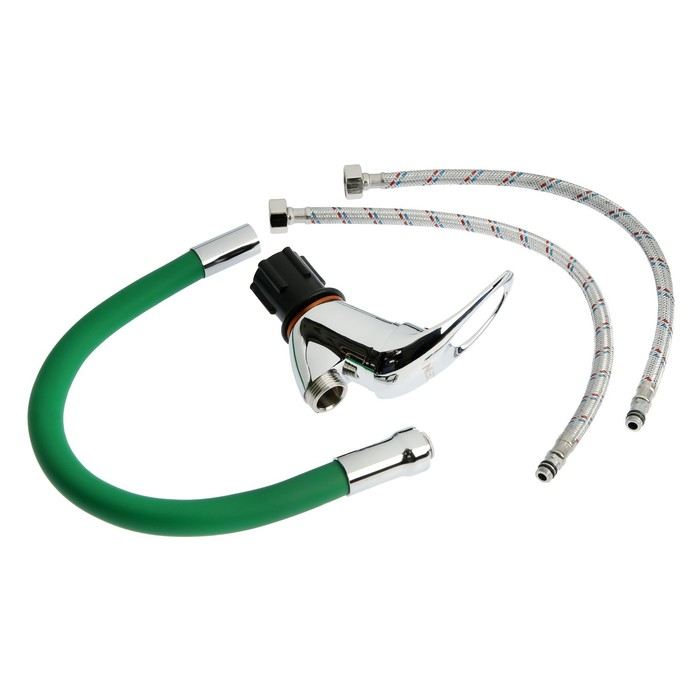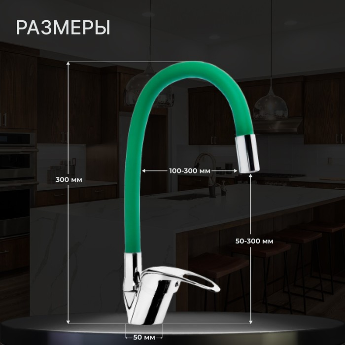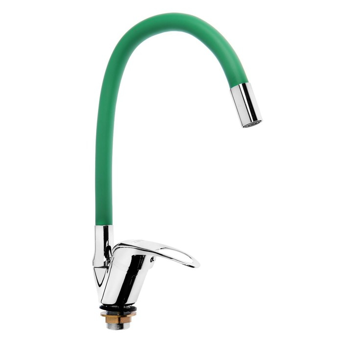 Смеситель для кухни ZEIN Z2109, однорычажный, гибкий излив, картридж 40 мм, зеленый/хром
