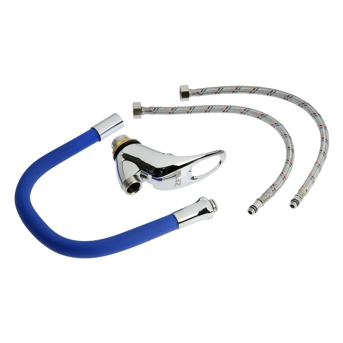 Смеситель для кухни ZEIN Z2112, однорычажный, гибкий излив, картридж 40 мм, синий/хром