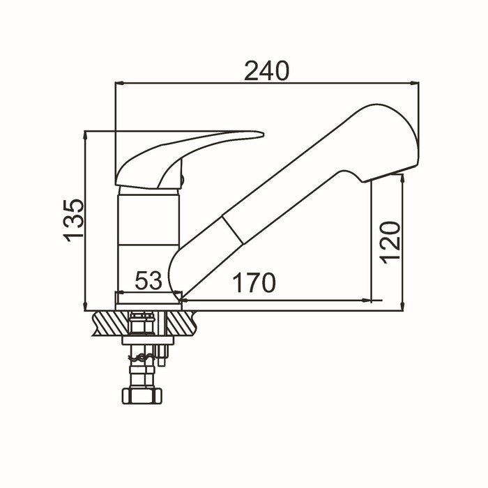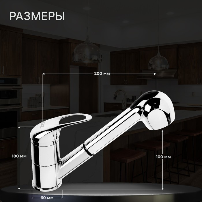 Смеситель для кухни ZEIN Z1301, однорычажный, картридж 35 мм, с выдвижной лейкой, хром