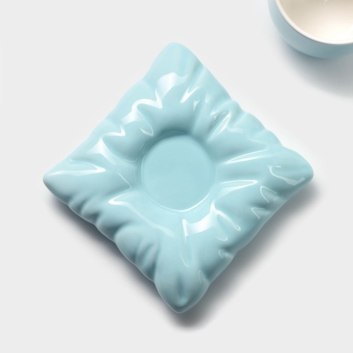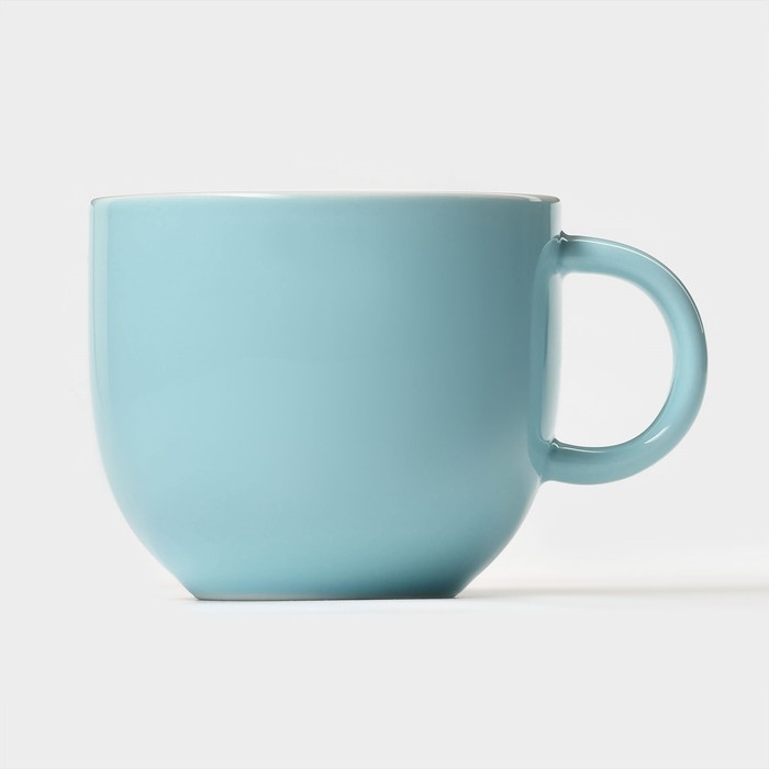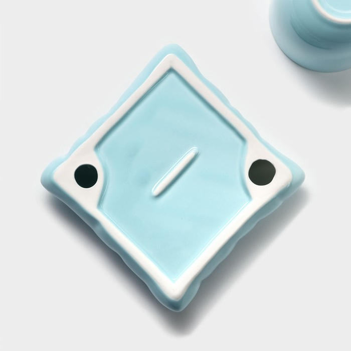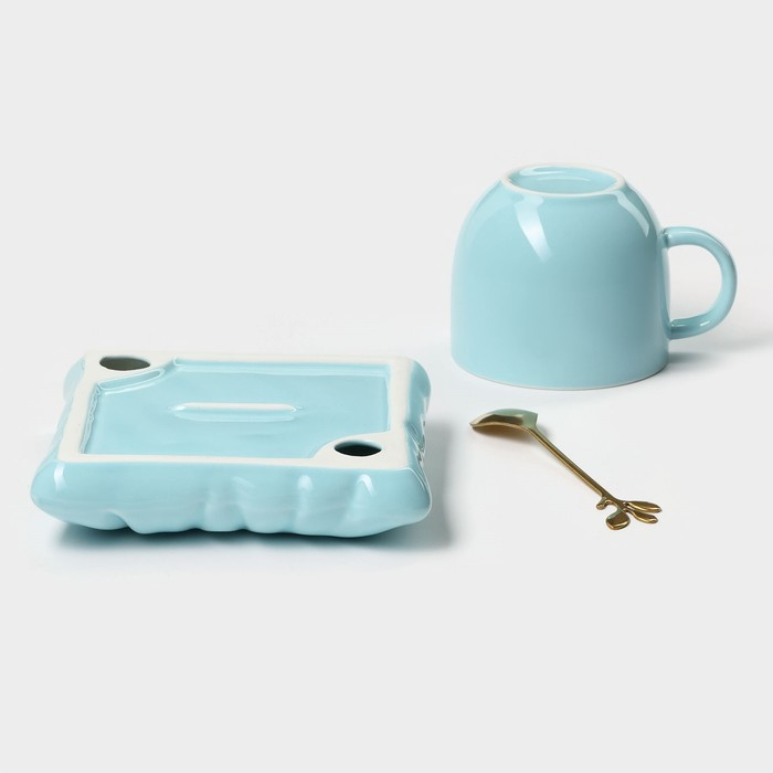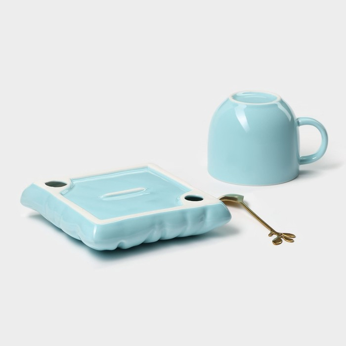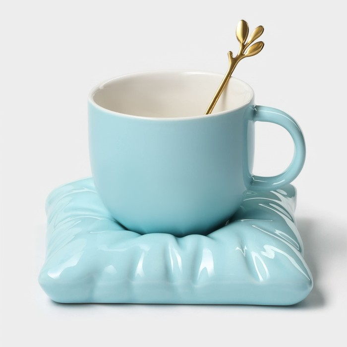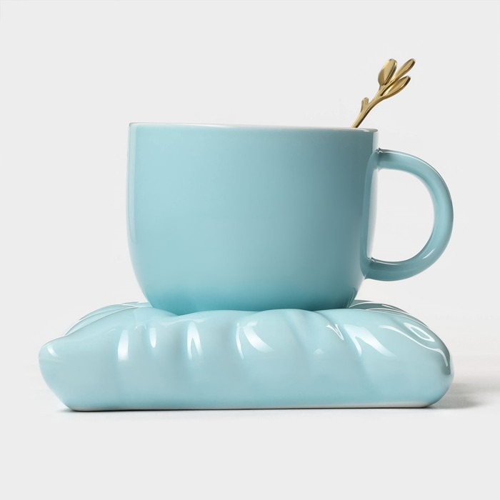Чайная пара керамическая с ложкой «Зефирка», 2 предмета: чашка 250 мл, блюдце d=13 см, цвет голубой