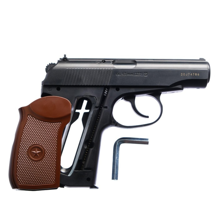 Пневматический пистолет Borner PM-X – это копия прославленного Макарова, предназначенная для тренировок начинающих стрелков и развлекательной стрельбы. Модификация является газобаллонной пневматикой, энергию пуле сообщает баллончик с углекислотой массой 12 грамм. Боеприпасы для этого пистолета – это шарики диаметром 4,5 мм, количество шариков в магазине – 16 единиц.