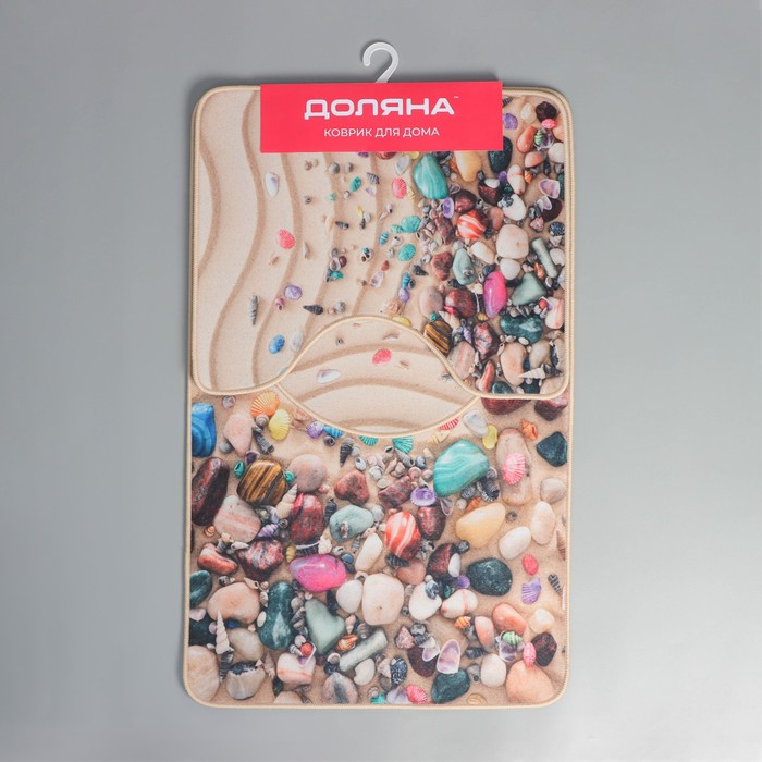 Набор ковриков для ванной и туалета Доляна «Ракушки», 3 шт: 50×80, 50×40, 40×43 см