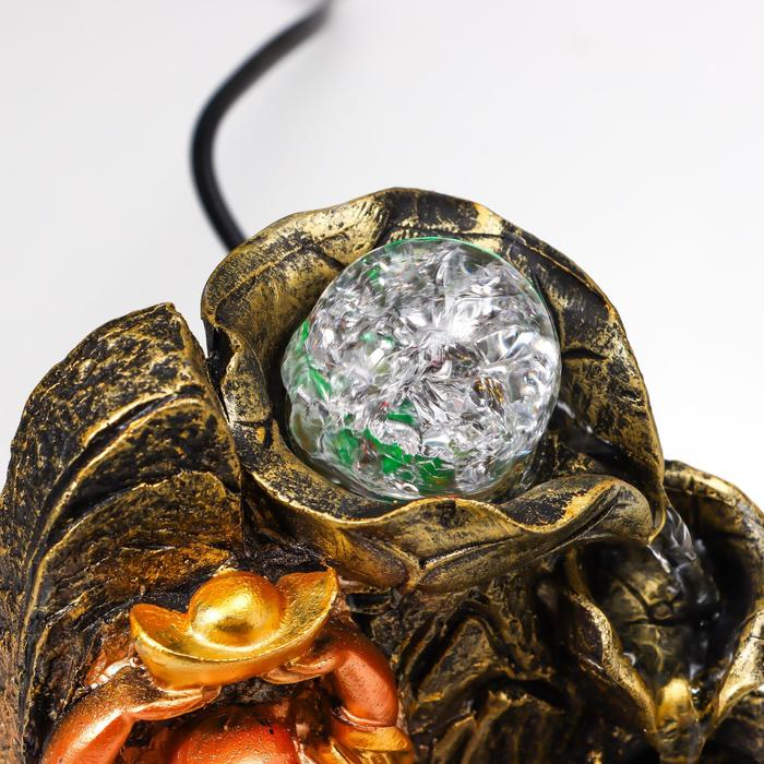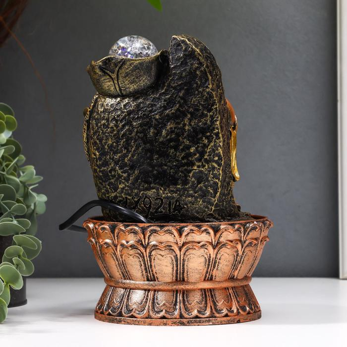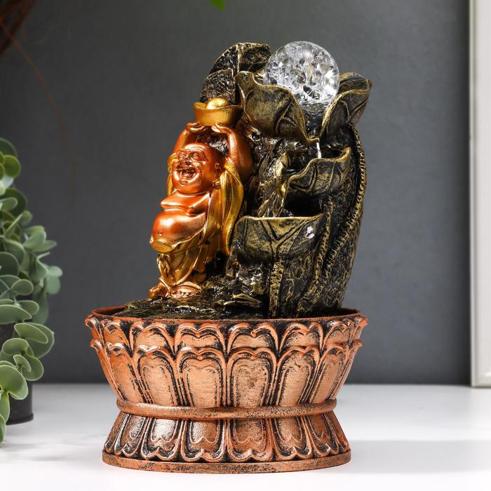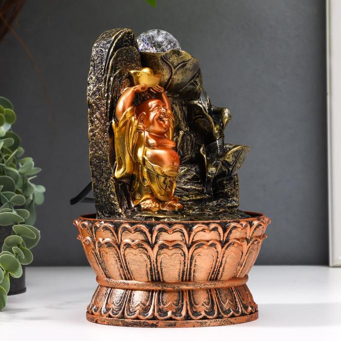 Фонтан настольный от сети, подсветка "Хотей со слитком у горного фонтана" 22,5х15х15 см