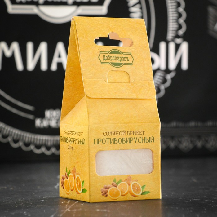 - Соляной брикет куб "Противовирусный" 200 г (лимон, имбирь)