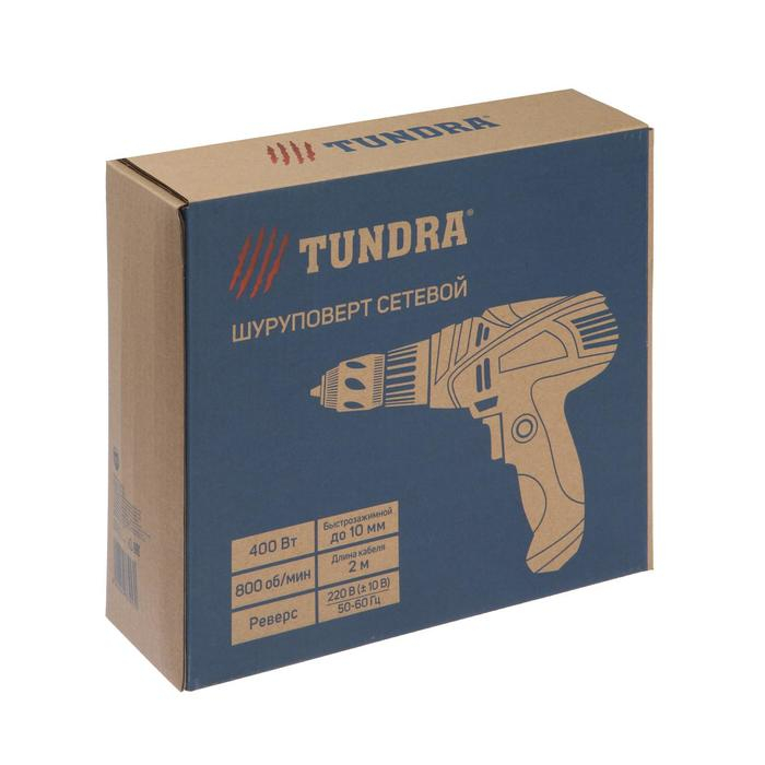 Шуруповерт сетевой ТУНДРА, патрон БЗ, обрезиненная рукоятка, 400 Вт, 800 об/мин