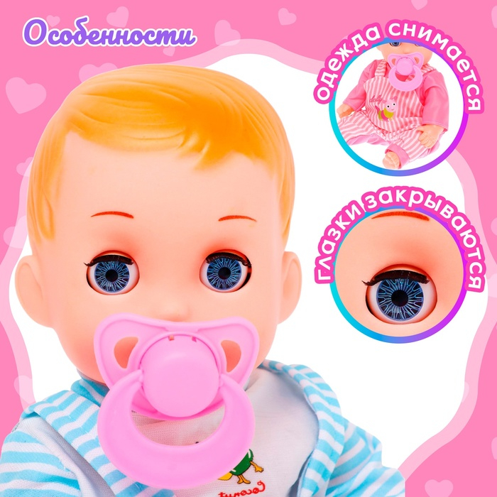 Пупс «Малыш» со звуком, в костюмчике, МИКС
