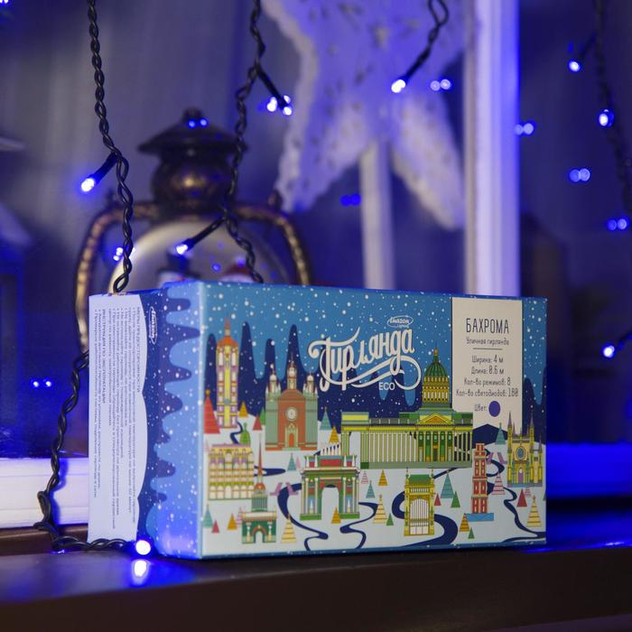 Гирлянда «Бахрома» 4 × 0.6 м, IP44, тёмная нить, 180 LED, свечение синее, 8 режимов, 220 В