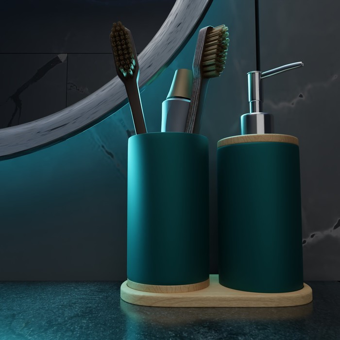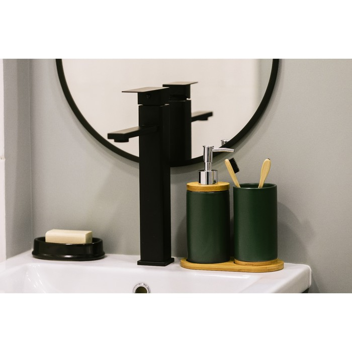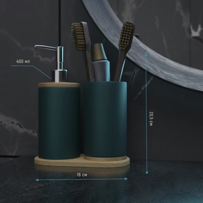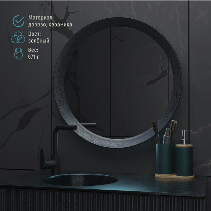 Набор аксессуаров для ванной комнаты «Натура», 2 предмета (дозатор 400 мл, стакан, на подставке), цвет зелёный