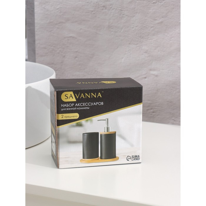 Набор аксессуаров для ванной комнаты SAVANNA «Бэкки», 3 предмета (мыльница, дозатор для мыла 400 мл, стакан), цвет серо-голубой